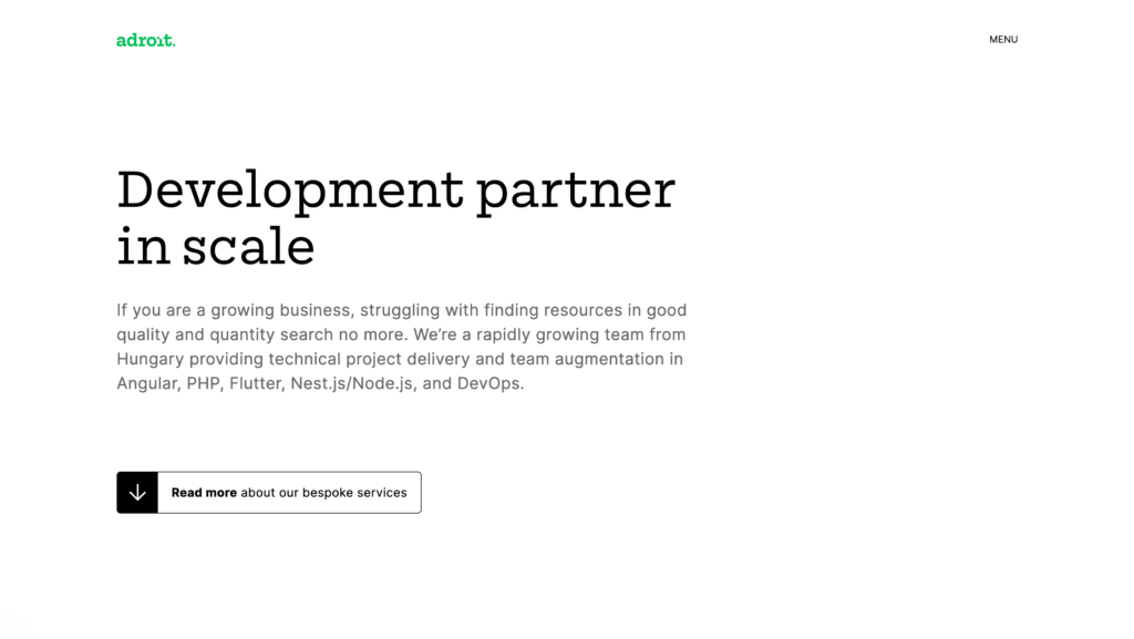 Adroit Group is a rapidly growing team from Hungary providing technical project delivery and team augmentation in Angular/React/Vue, PHP/.NET/Node.js, Flutter, and DevOps. Their goal is to create software that serves companies in their actual position, providing the perfect balance of functionality.