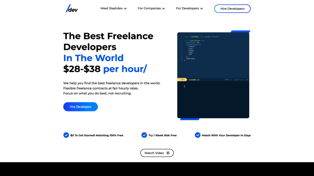 Slashdev helps you find the best remote developers in the world so that you can focus on what you do best, building the future. They screen over 2,000 developers every month and take less than 1% into their network. This allows them to find the very best engineers around the world for your project.