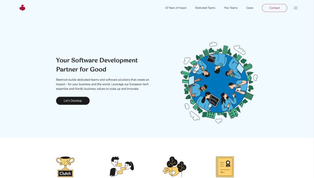 Beetroot AB is an impact-driven tech ecosystem that helps companies worldwide scale and realize their technology visions by building sustainable teams of tech experts in Europe. They offer a wide range of services including IT staff augmentation, Custom Software Solutions, Front-end development, Back-end development, Cross-platform and native mobile app development, UX & UI Design, WordPress development, MVP development, DevOps services, and IT Project Management.