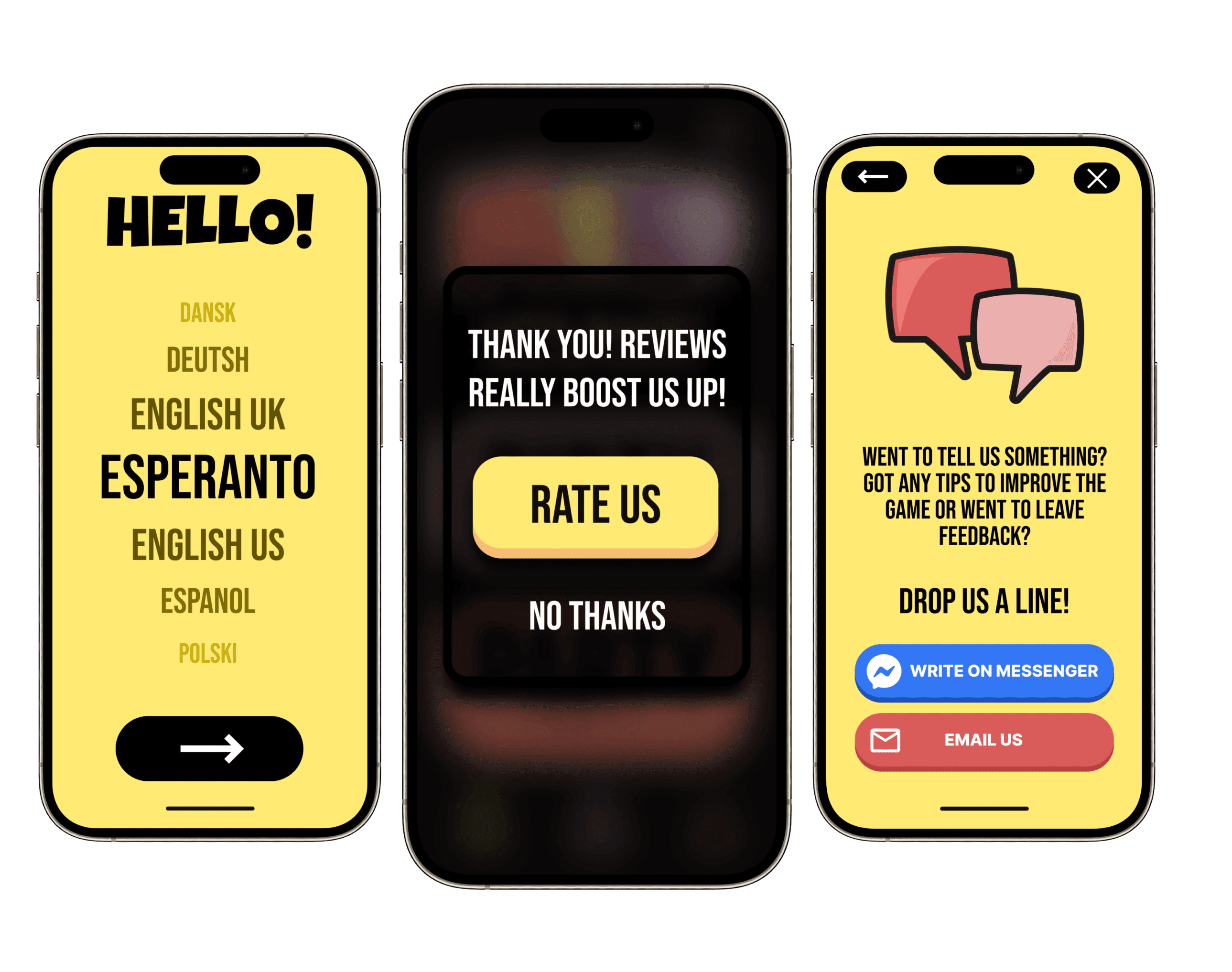 The app’s design is specifically tailored for iOS users, incorporating the latest market trends that will prevail in the coming years, featuring a simplistic and sleek brutalist style. While the game is targeted at people worldwide, it was developed with a focus on the US and European markets.